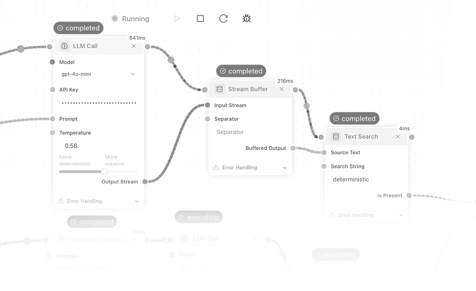 Create intelligent AI agents by connecting visual blocks—no coding required. Use any AI model you want: OpenAI, Claude, Gemini, DeepSeek, or run completely private with local models like Llama on your own hardware.